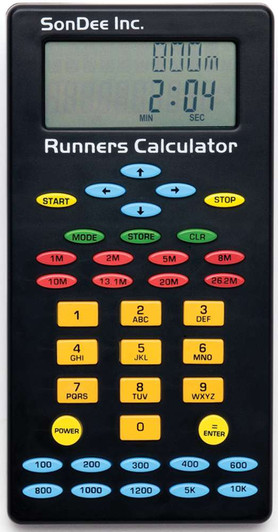 Use the Runners Calculator to find splits for any event from the 400 meters to the 26.2 mile marathon. All calculations entered must be in hours, minutes and seconds format. No tenths, etc. You cannot STORE calculations while in this mode. This mode will save coaches 40-60% of their preparation time it normally takes to calculate athlete's splits for workouts.