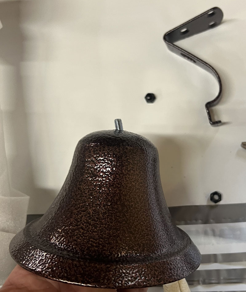 Ships in four boxes, base, pole, frame, digits. Remove handle from Bell if needed before mounting (see pics) WARNING: Products may contain chemicals known to the state of California to cause cancer, birth defects, or other reproductive harm. See www.P65Warnings.ca.gov for more info. |