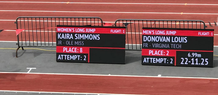 Infield displays can connect to a laptop or netbook to show live field event scores and measurements using the FieldLynx software. Finish line displays can connect to ResulTV for advanced broadcast-ready graphics Construction & Frame The premium aluminum alloy frame offers solid, weatherproof construction and a lightweight design. The optional flight case makes it easy to move the display within the infield or transport it between events. Because the display units are modular, a 2 panel display can easily be turned into a longer or taller display at a later date if necessary. Key Features